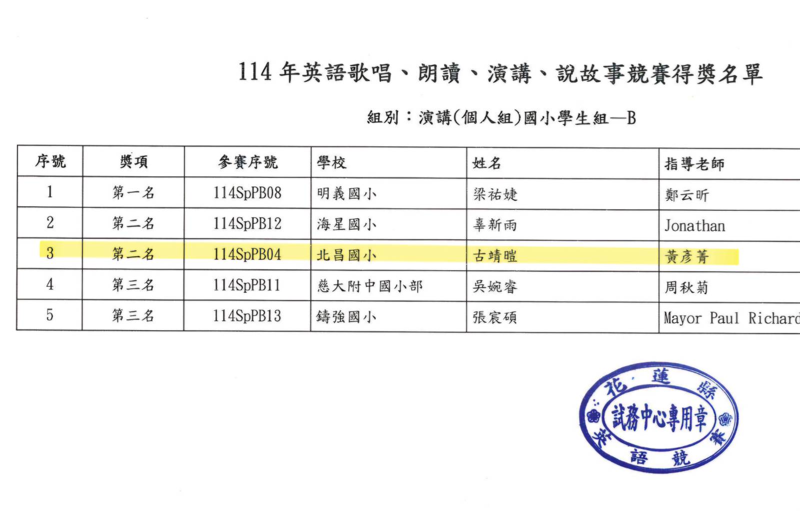 花蓮縣114年英語競賽