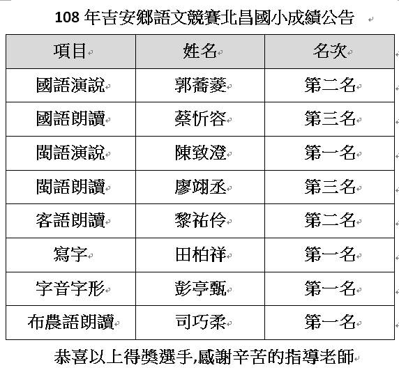 108年吉安鄉國語文競賽