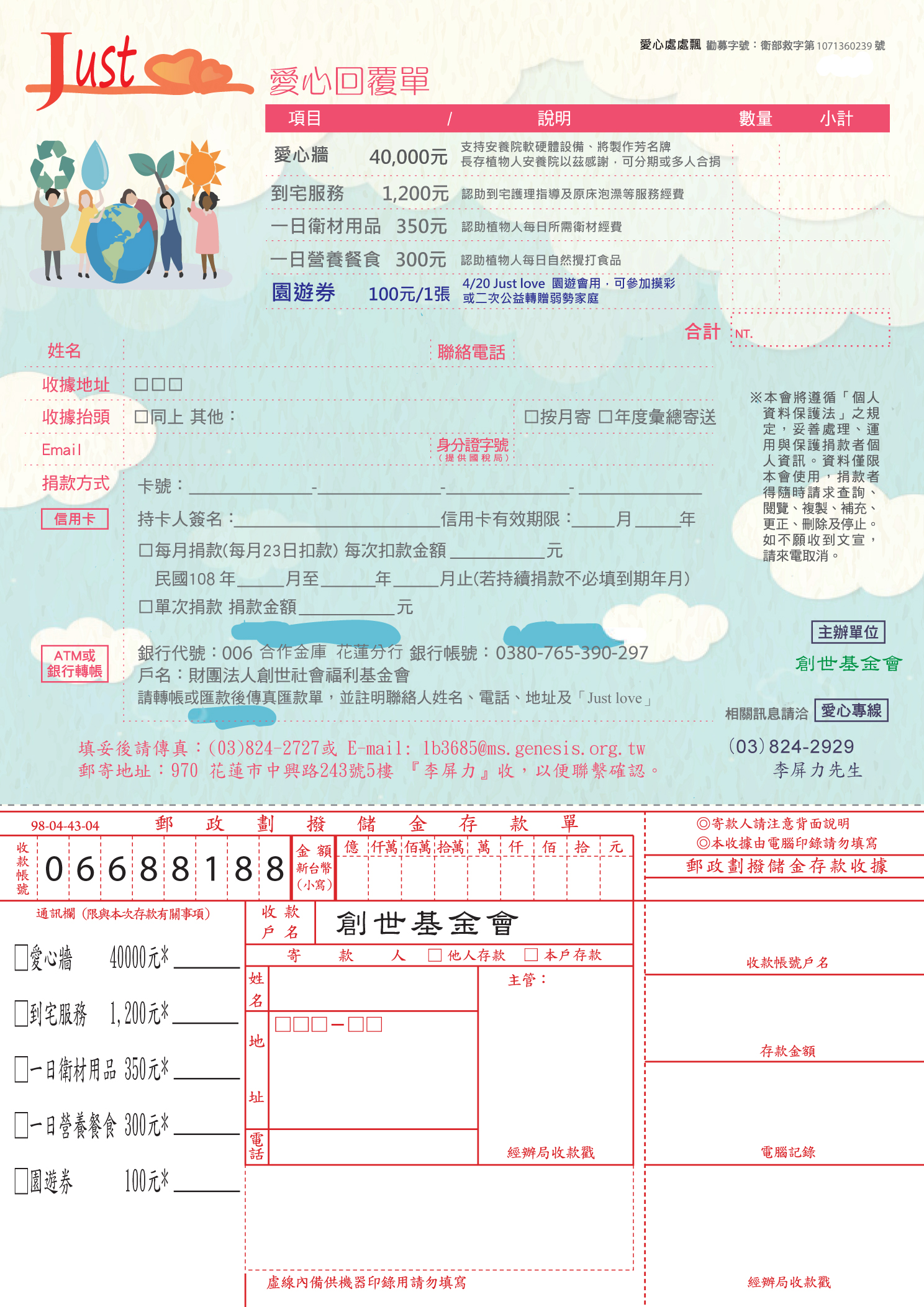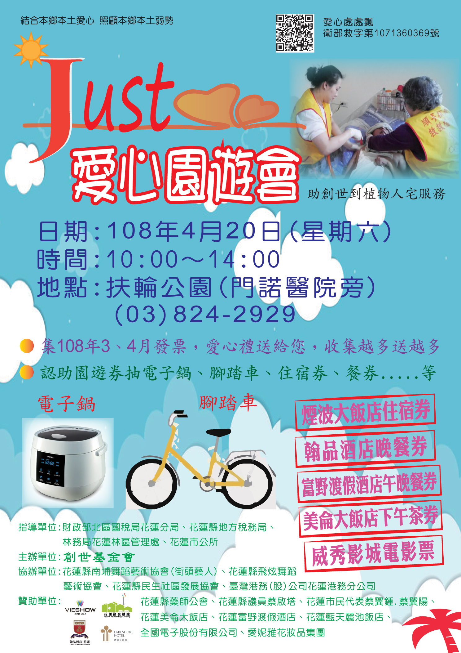 轉知創世基金會108.04.20Just愛心園遊會相關訊息