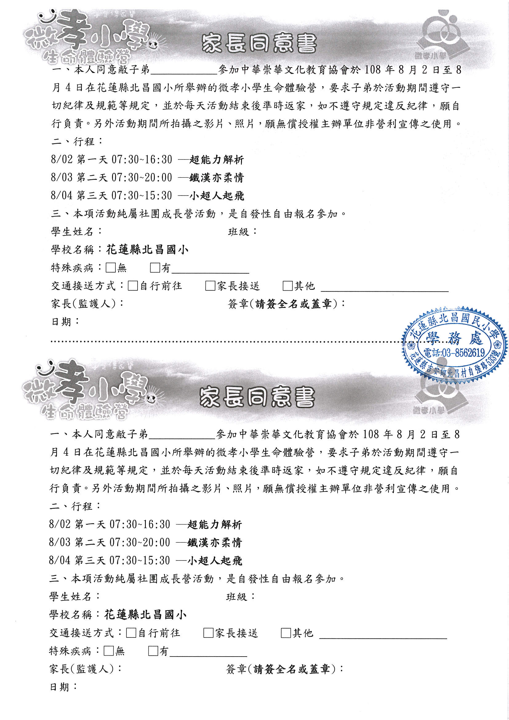 --------------------------沿此線撕下------------------------『北昌國小–抓住這夏天』學習成長營報名表暨家長同意書