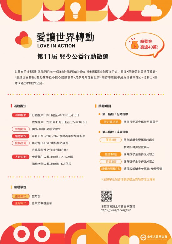 愛讓世界轉動 兒少公益行動」2021第11屆徵選簡章