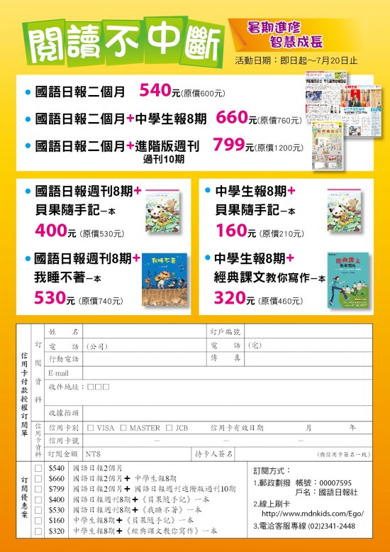 國語日報-105年暑假「閱讀不中斷」優惠訂閱專案一案