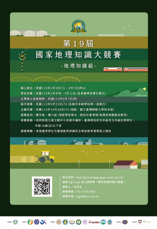 中華民國地理學會辦理112年第19屆國家地理知識大競賽之競賽,辦法如附件,請參閱。