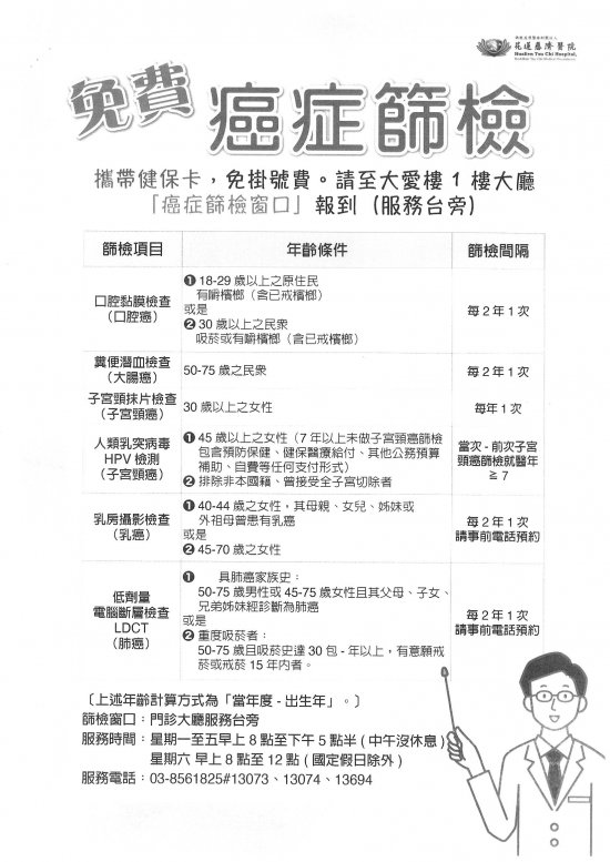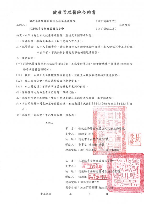 花蓮縣府暨所屬機關學校健康檢查優惠方案(慈濟&門諾)