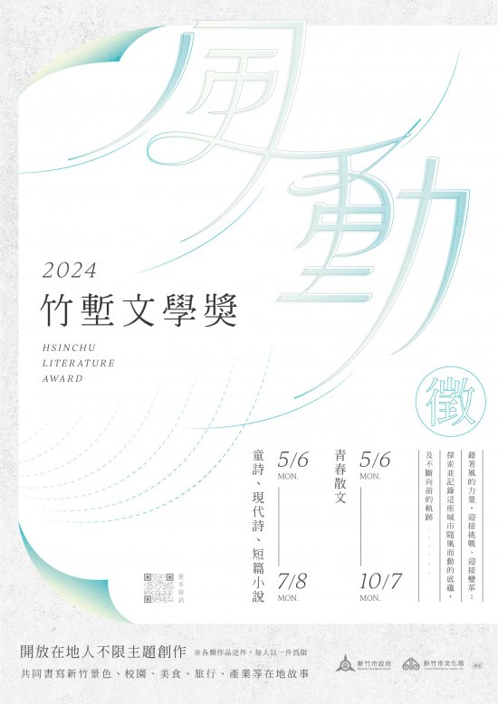 3. | 詳細活動資訊及簡章內容請至網站:https://culture.hccg.gov.tw/業務項目/竹塹文學獎/公告下載,歡迎下載利用。 |
