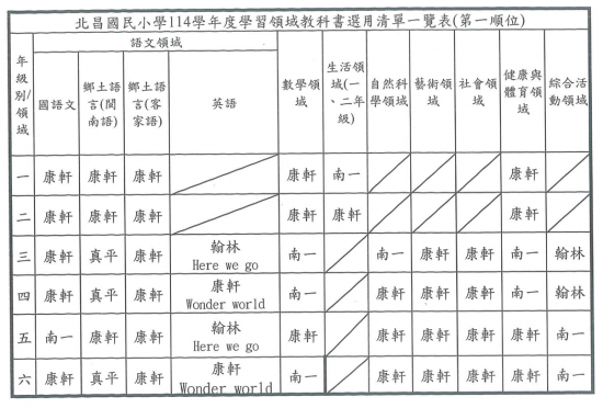 114學年度各學年教科書版本