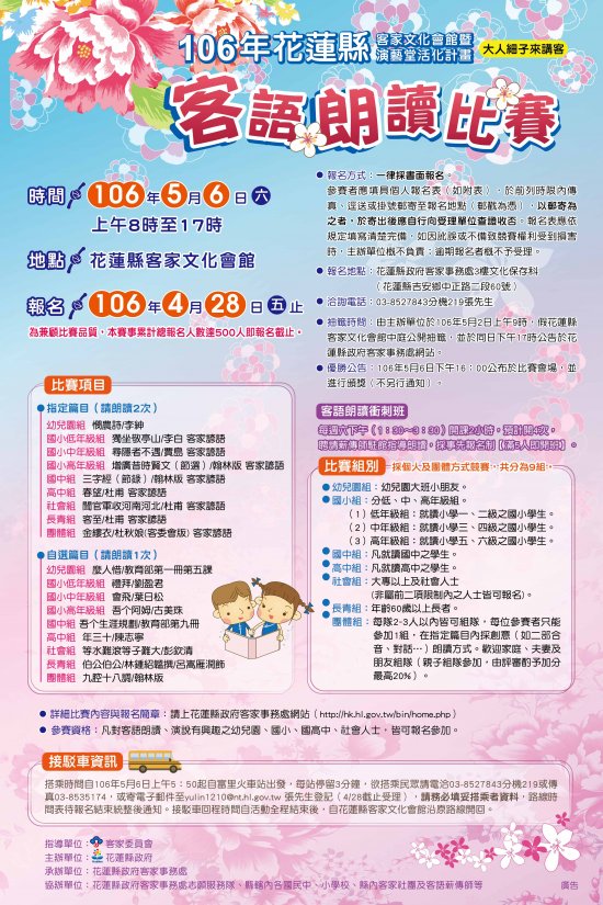 【教學組】轉知「106年花蓮縣客語朗讀比賽」活動訊息